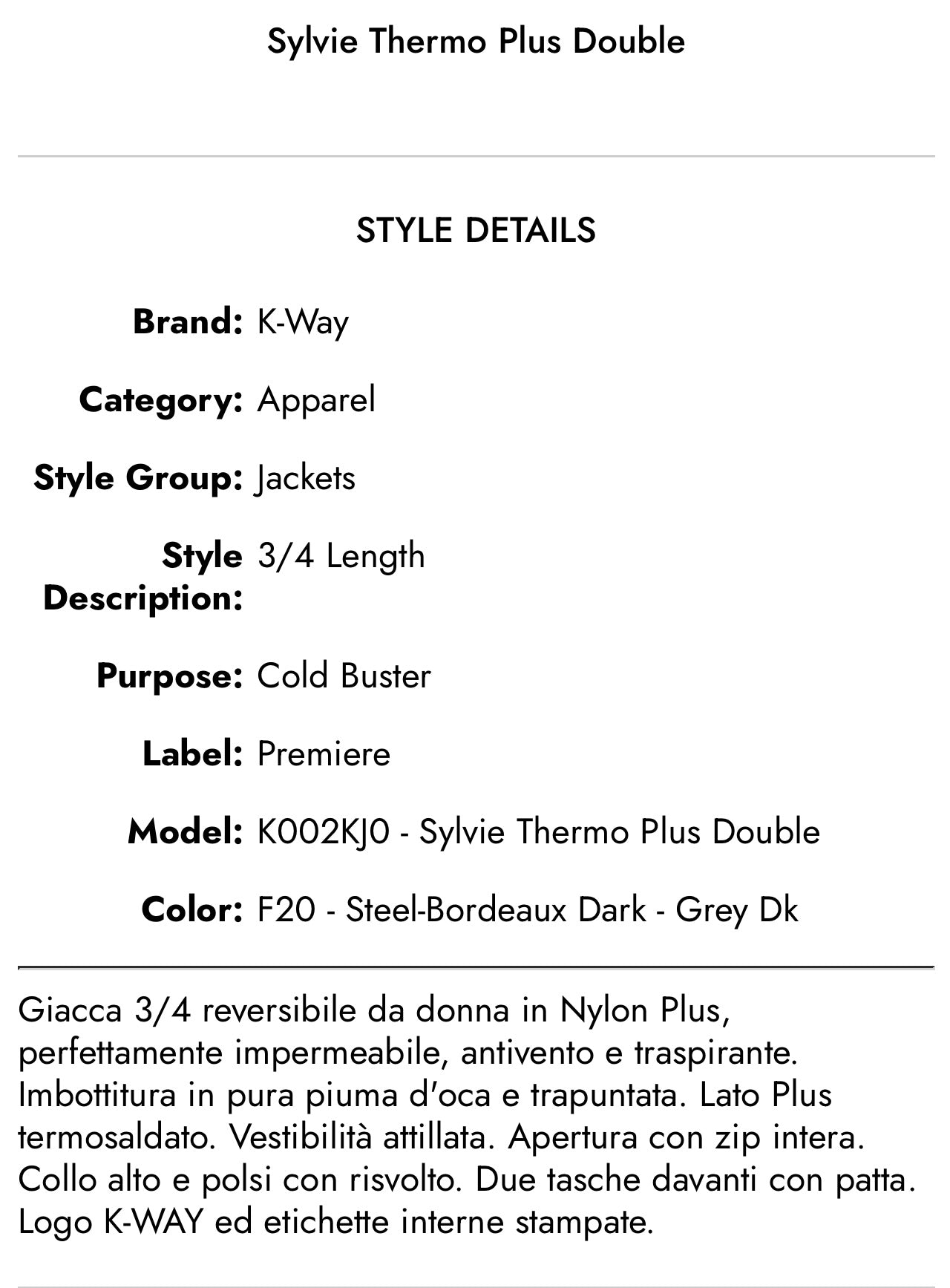 K-Way modello Sylvie double-face 8 anni